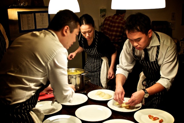 Lee runs Studiofeast with two friends; none are professional chefs. They advertise their events via an email list that numbers close to 3,000. Because he doesn't rely on Studiofeast as his sole source of income, Lee says he has more freedom to push the culinary envelope. At times, Studiofeast has hosted some 150 people for dinners exceeding 10 courses, but a group of 12-25 people is their sweet spot. While he's glad to have had the experience of producing high-quality food at a heavier volume, a smaller size allows Lee more time to mingle with his audience and talk to them about the culinary concept he's presented. "Education is important to me. I like to be able to tell people about the guy who that morning foraged the mushrooms they're eating that night."